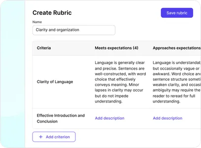 Use fully customizable rubrics that align with your unique grading standards and specific course requirements.