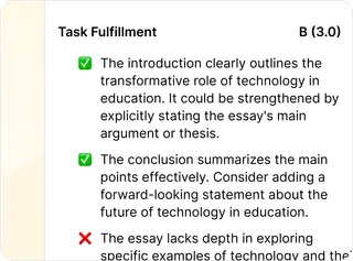 Get clear, constructive, and student-friendly feedback tailored to your work, making it easy to identify strengths and address areas for improvement.